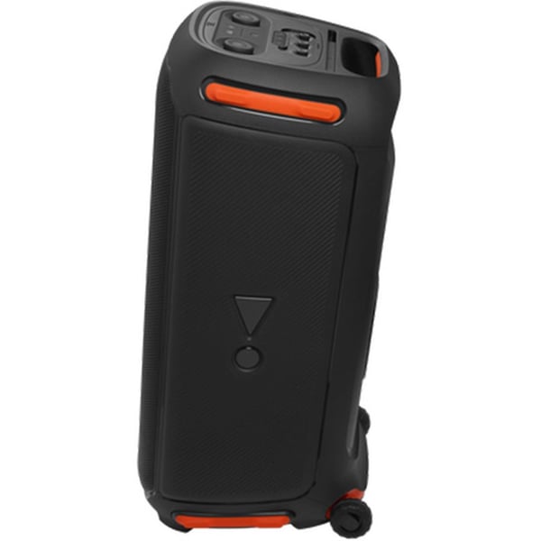 The splashproof Party Box 710 transforms your next event into a real party, concert or nightclub. With its unique and colorful light show synced to JBL Original Pro Sound. Minimalistic and intuitive top panel controls and the PartyBox App let you create next-level musical and visual experiences. Customizing both the flashing, strobe lights and the amazing sound from the dual set of tweeters and bass-rich woofers. One button True Wireless Sound instantly pairs two Party Box 710s for an even bigger crowd. And with an easy-to-grip handle and robust wheels, you can keep the good times rolling wherever the party goes