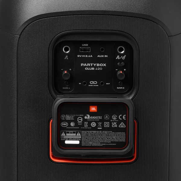 Whether you’re partying with friends in the park or by the seaside, the JBL PartyBox Club 120 is IPX4 splashproof, means a little rain won’t stop the fun.