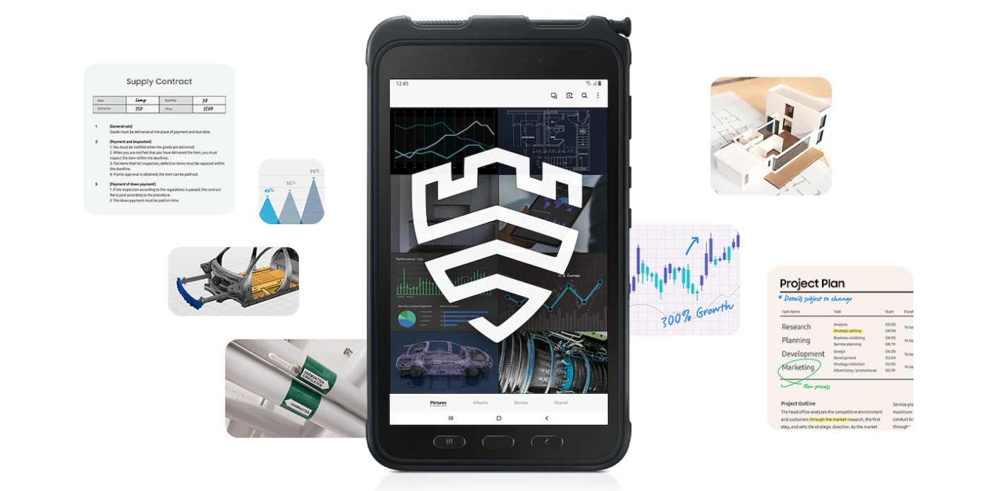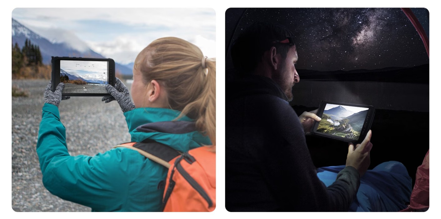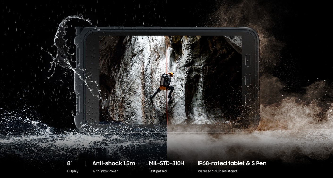 Galaxy Tab Active3 is robust and reliable in harsh conditions. With an IP68 rating and the latest MIL-STD-810H cerification, the durable 8-inch tablet is resistant to water and dust and can withstand 1.5m drops with Protective Cover. Portable and compact, it’s built to tough out your day.